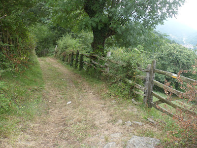 Dejada atrás la fuente, el "perru" tocapelotas, la botella y el cuchillo, como no podía ser de otra forma, otro senderín "estrechu" y "empedrau" para no desentonar con lo ya recorrido.